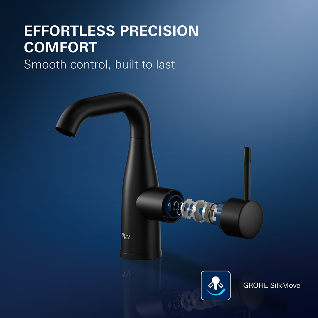 GROHE SilkMove絲滑柔順操作技術是通過由 33 個零件組成的閥芯,可輕鬆控制水流和溫度。